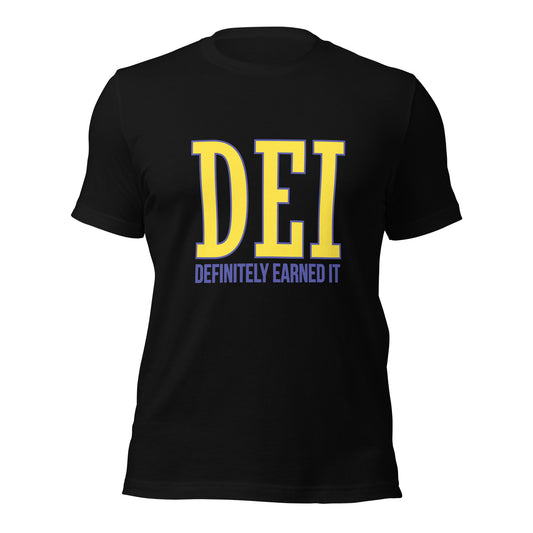 DEI: Definitely Earned It T-shirt - blue and yellow