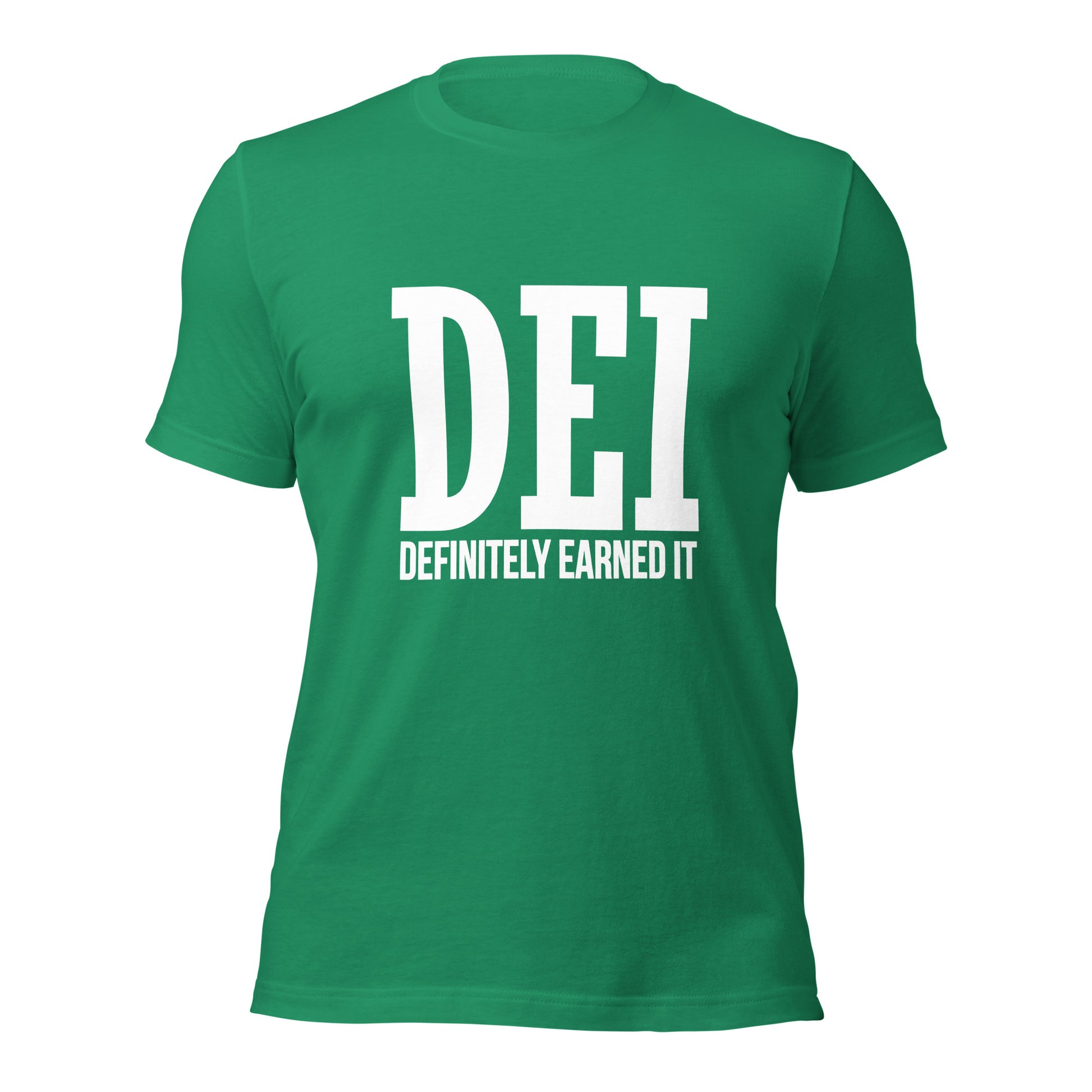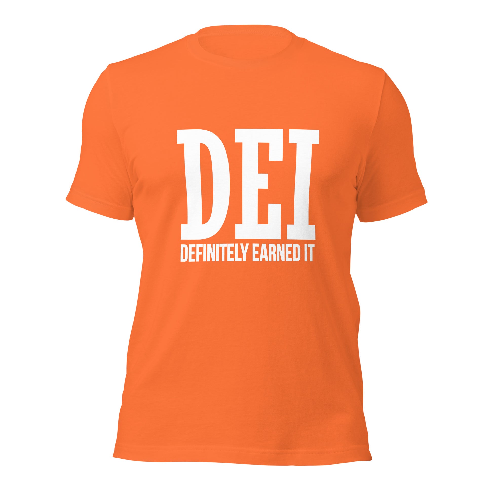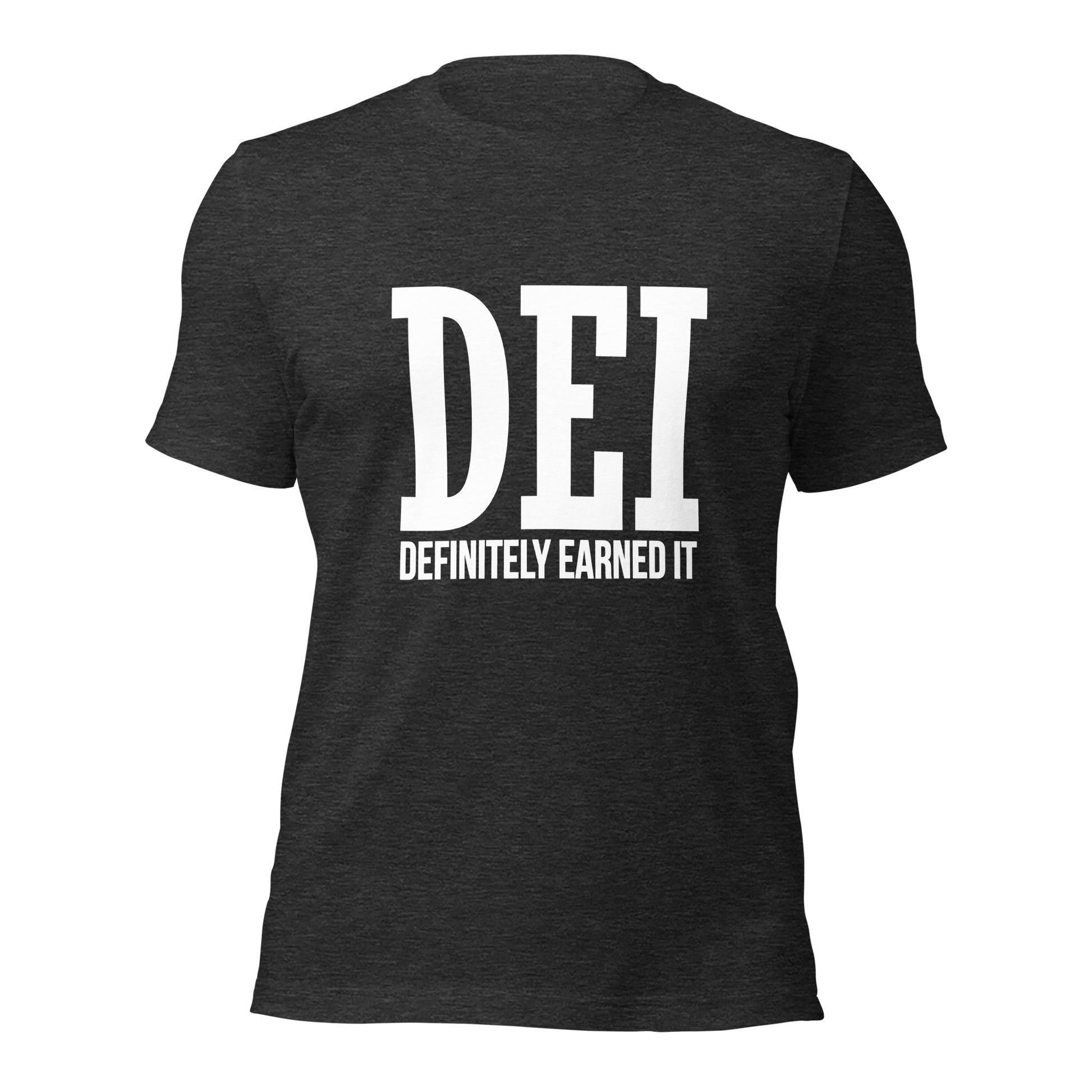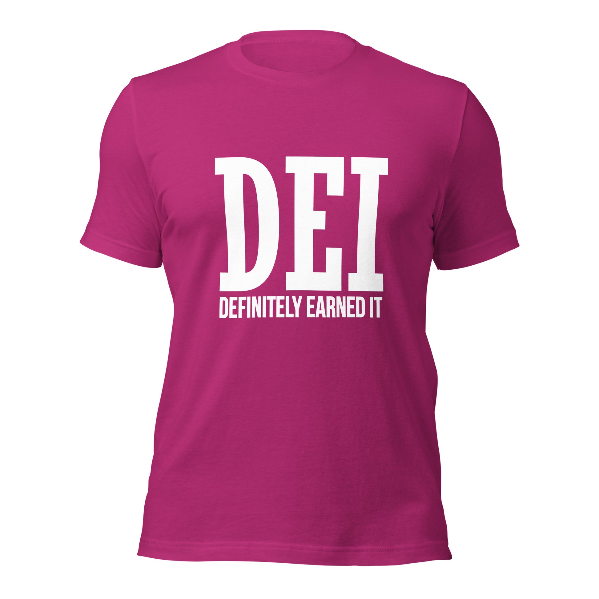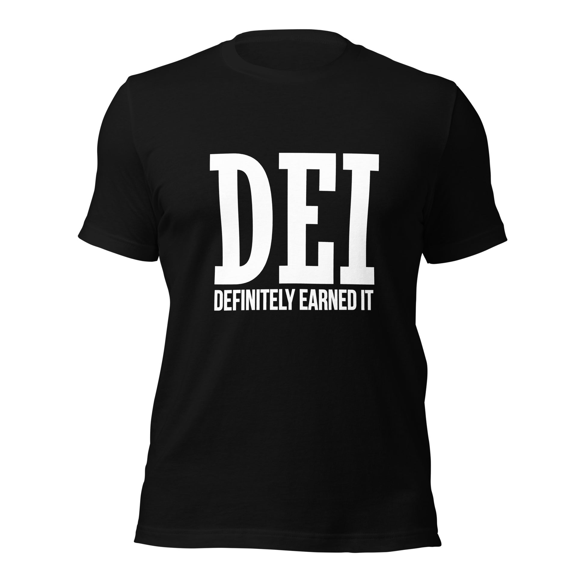This "DEI: Definitely Earned It" shirt is a testament to the hard work and perseverance required to stand out and be recognized in a world that often overlooks the effort. Made from soft, high-quality cotton, it provides all-day comfort and durability. Whether you're at a conference, a casual meet-up, or simply making a statement in your everyday life, this shirt proudly showcases your commitment to creating a more inclusive world. Wear it with pride and let the world know that every achievement is earned through resilience and dedication.
